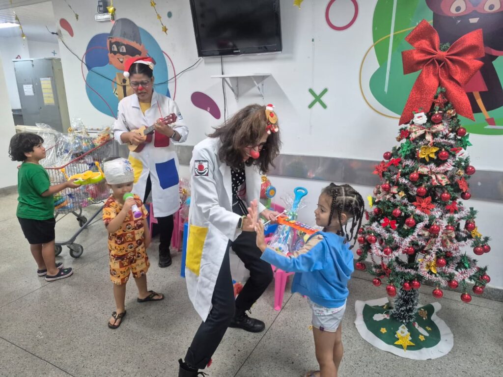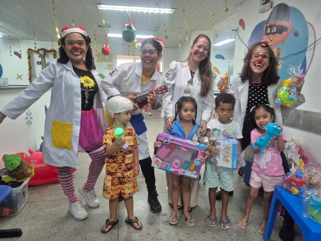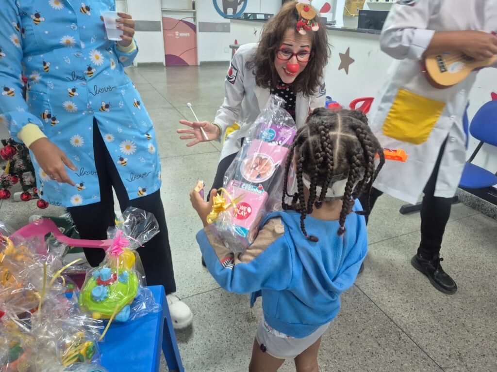 A ação contou com a participação dos doutores do ‘Palhaços de Propósito’, grupo que desenvolve atividades lúdicas em ambientes hospitalares. A doutora palhaça Soraya Paulon, chegou à unidade com doações de presentes feitas pelo Consultório Inspirar. “O Natal no hospital é mais difícil para a criança e para a família. A ação ajuda a aliviar a dor e trazer alegria”, explicou.