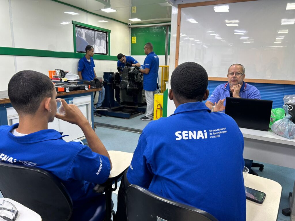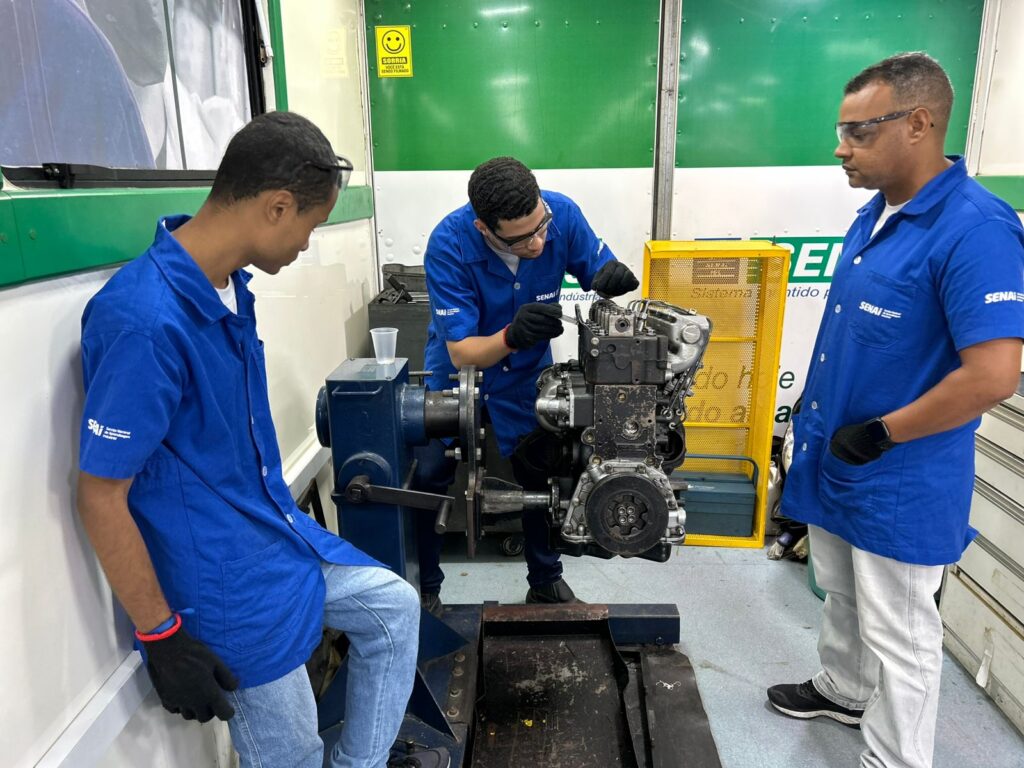 Durante a ação, foi possível obter mais informações sobre os cursos do programa ‘Qualifica Sergipe’, que oferece qualificação profissional de acordo com as necessidades e demandas do mercado local, facilitando que os novos profissionais formados tenham acesso prioritário às oportunidades da região. No local, uma das turmas do curso de ‘Mecânico de manutenção de motores a diesel’ estava em aula, que é realizada na carreta-escola, graças à parceria com o Serviço Nacional de Aprendizagem Industrial (Senai).