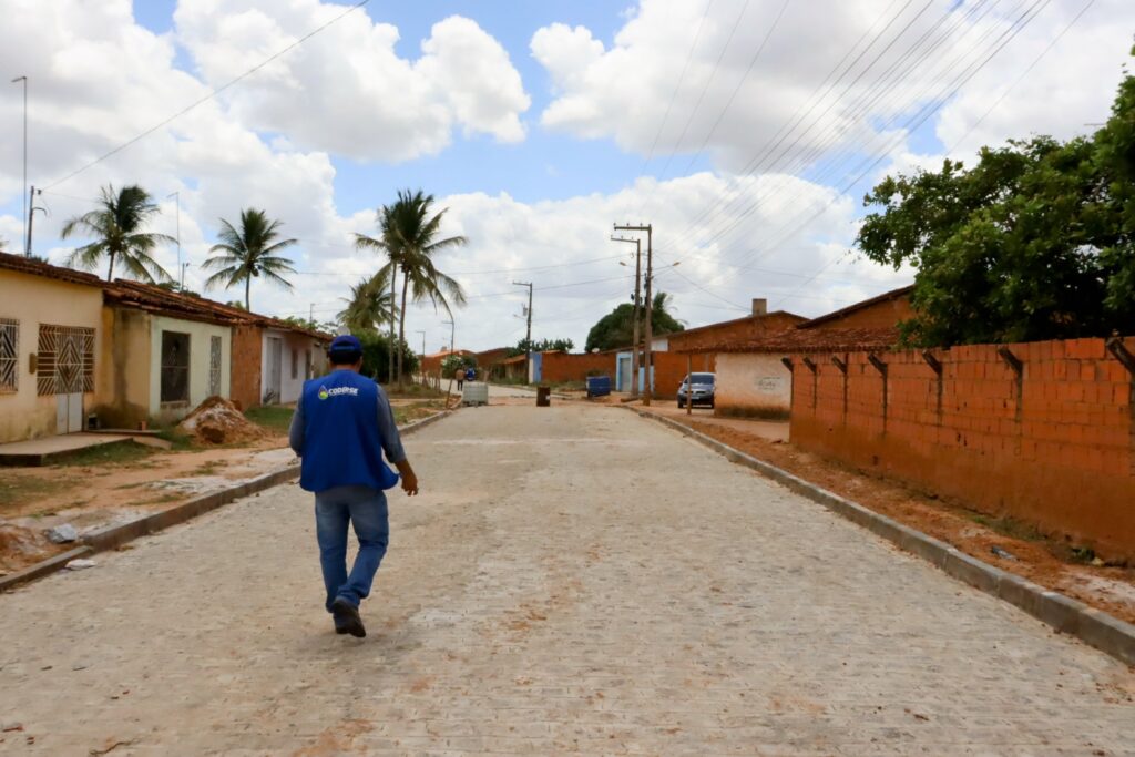 Mais adiantada e prevista para ser concluída no final de fevereiro, a obra de calçamento do povoado Rodeador, em Campo do Brito, vai beneficiar cerca de 80 famílias, a partir de um investimento de R$ 332.736,82 do Ministério da Integração e Desenvolvimento Regional (MIDR), via Companhia de Desenvolvimento dos Vales do São Francisco e do Parnaíba (Codevasf). A empresa federal fiscaliza a aplicação dos recursos, enquanto a Coderse executa, por meio de construtora licitada, e faz a fiscalização da obra.