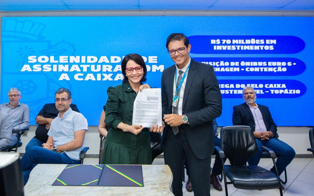 A prefeita de Aracaju, Emília Corrêa, assinou nesta sexta-feira, 19, um contrato de financiamento com a Caixa Econômica Federal para a aquisição de 36 novos ônibus que integrarão a frota do transporte coletivo da capital. A solenidade foi realizada no auditório do Centro Administrativo Prefeito Aloísio Campos, sede do Executivo municipal.