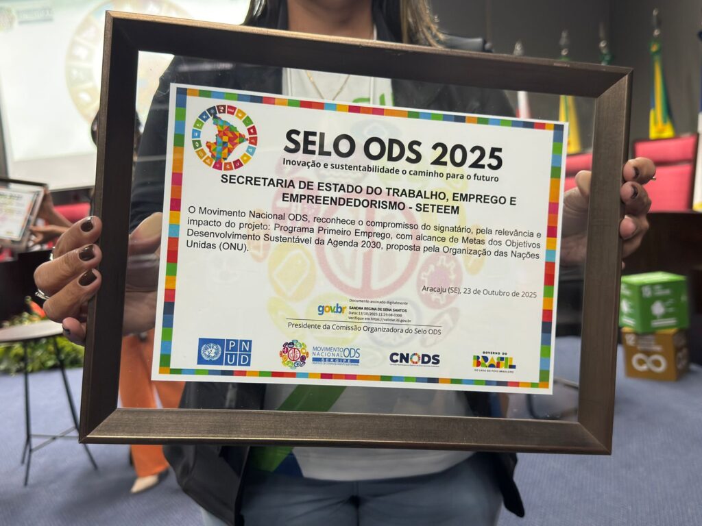 O Programa Primeiro Emprego, executado pelo Governo de Sergipe, por meio da Secretaria de Estado do Trabalho, Emprego e Empreededorismo (Seteem), foi uma das práticas premiadas com o “Selo ODS Sergipe”, iniciativa criada para reconhecer ações alinhadas aos Objetivos de Desenvolvimento Sustentável (ODS) da ONU. A entrega do selo aconteceu no Tribunal de Justiça de Sergipe (TJSE) nesta quinta-feira, 23, durante o Encontro Estadual ODS.