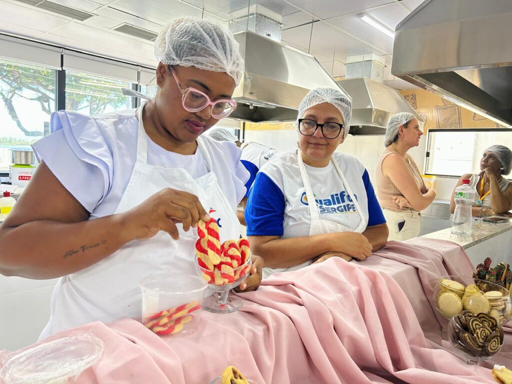 Em outra vertente dos trabalho voltados para a área de emprego e renda, a aluna Luciana da Silva Bispo destacou que o curso de Culinária Natalina, ofertado pelo Qualifica Sergipe, foi sua primeira experiência e que, antes, ela não sabia fazer nada na cozinha. “O interesse pelo curso surgiu porque queria fazer alguma coisa diferente para os amigos e para a família. Gostei muito, amei, na verdade. Gostei tanto que já me inscrevi no próximo de comidas natalinas. Acho que esses cursos podem me ajudar a empreender, vou praticando, começando devagarzinho, nos aperfeiçoando e melhorando”, mencionou.