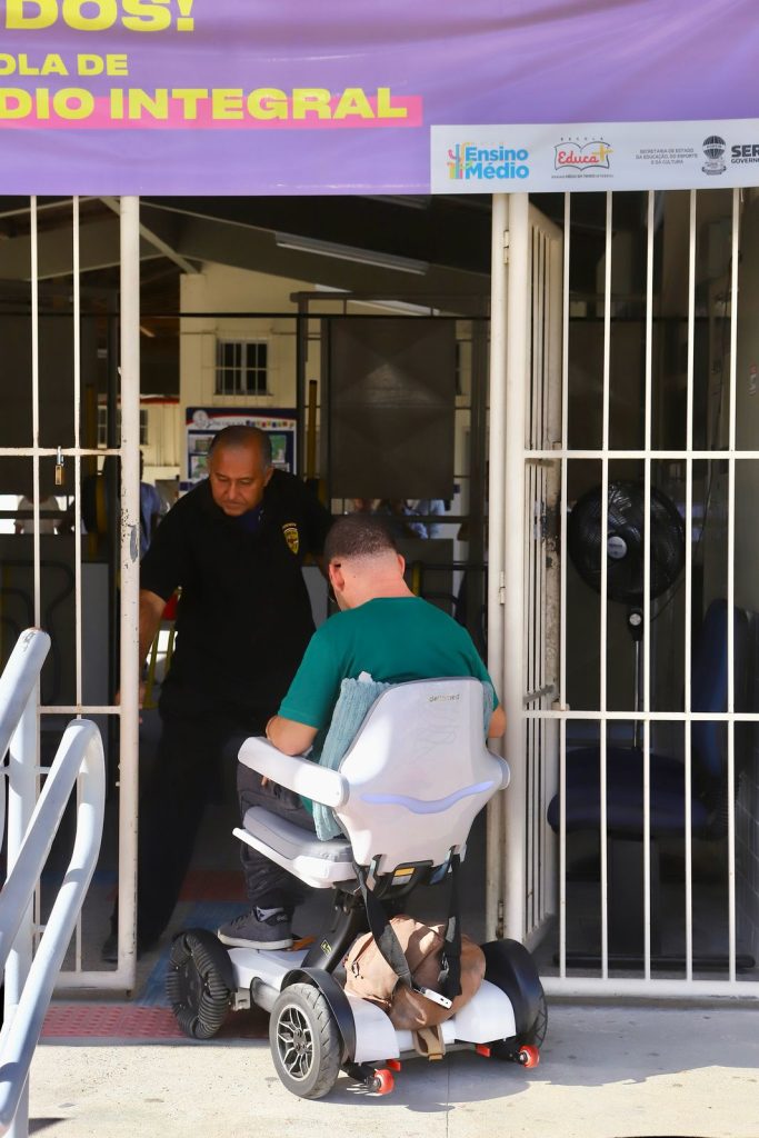 Clóvis foi um dos 13 candidatos que realizou as provas no Centro de Excelência Santos Dumont, local que foi preparado exclusivamente para candidatos com deficiência, como explicou Cliton de Araújo, coordenador da Fundação Cesgranrio na unidade. “A escola foi equipada para atender as necessidades apresentadas no ato da inscrição, por isso tivemos leitores e transcritores para auxiliá-los. Eles fazem a prova em salas individuais, e em cada sala temos, no mínimo, duas pessoas para ajudá-los, além de equipe de apoio para dar suporte para quem desejar beber água ou ir ao banheiro”, explicou o coordenador.