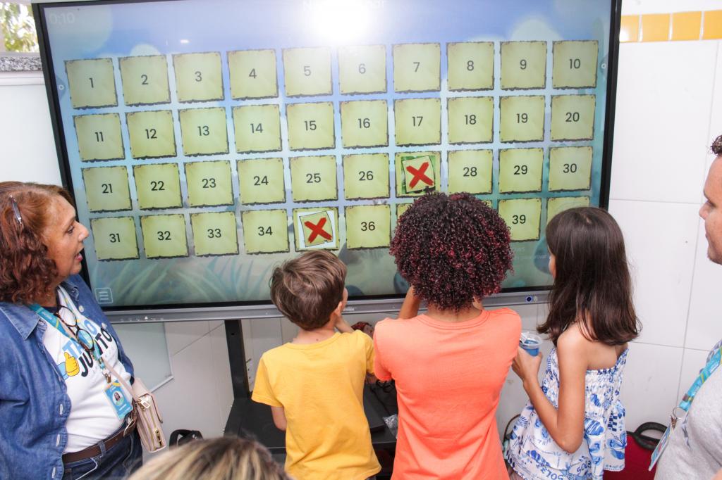 Para levar entretenimento educativo à criançada, servidores da Semed iniciaram diversos games na lousa digital, como jogo da memória, caça-palavras, jogo da forca, os de identificar figuras com palavras, entre outros. Juntos, Miguel Vasconcelos e Vítor Gabriel contaram que se divertiram muito no universo desses jogos. “Nunca joguei numa tela desse tamanho, é bem legal. Agora, estou aqui lendo e juntando as figurinhas iguais”, disse Vítor. Ao lado dele, Miguel Vasconcelos, aluno do 2º ano da escola, completou: “É muito divertido jogar aqui”.